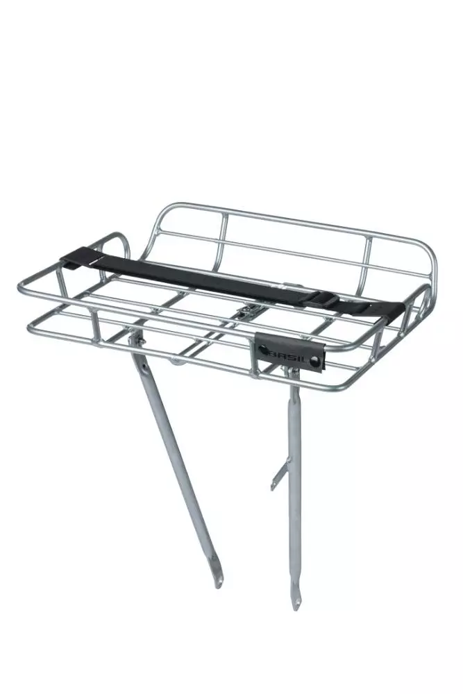 Basil Portland Front Carrier High er en iøjnefaldende vintage-frontbagagebærer i aluminium. Bagagebæreren har en aftagelig rem, der hjælper med at holde taske eller kurv på plads under cykelturen. Holderen har en maksimal bæreevne på 10 kg og er velegnet til fastgørelse på 26 og 28 tommer cykelstel. Front Carrier High fra Basil Portland-serien har afrundede kanter og er meget nem at montere. Bagagebæreren giver også mulighed for at fastgøre en lampe for at forbedre synlighed i mørke. Desuden forgaffelbeslaget forstærket og er velegnet til 12-13 mm aksler.